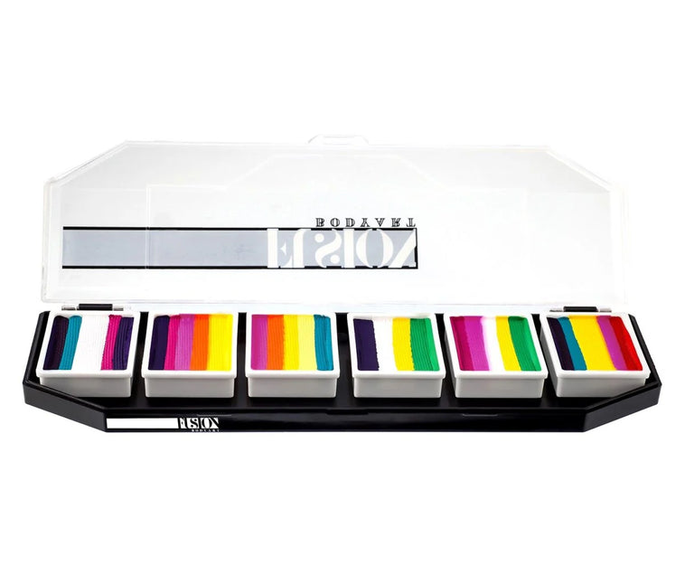 Fusion’s Tropical Collection palette was designed by Australian artist, Leanne Courtney. These colour combos were expertly designed by Leanne to provide maximum contrast and brightness. You can use these splits alone for a small design or use them together to create bold designs that your clients will love. This palette is best for tropical flowers, neon fish, sunsets, parrots, peacocks, unicorn manes, and wild butterflies.
