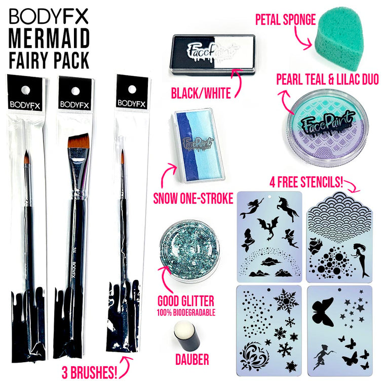 Let your child's imagination take flight with the Fairy Mermaid Pack, a magical collection designed to create enchanting face and body art. This kit is filled with everything needed to transform into a princess, fairy, or any mystical creature from their favourite stories.