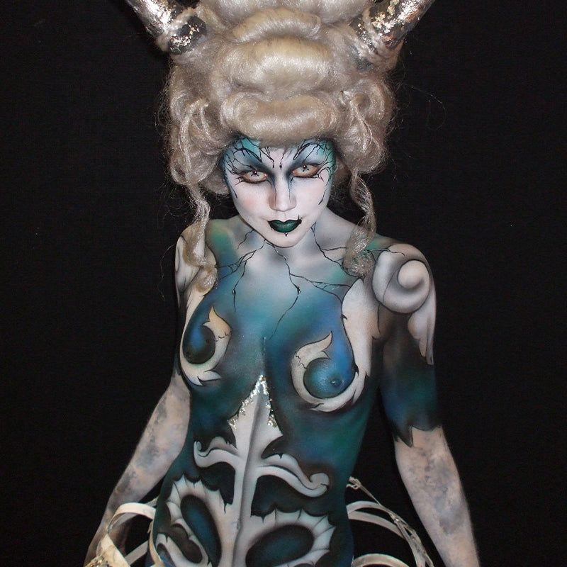Glycerine based paints are the main paints you need for body painting, as they're a little softer, they get a smoother coverage, and they're easier to blend. Gradients are your friend!